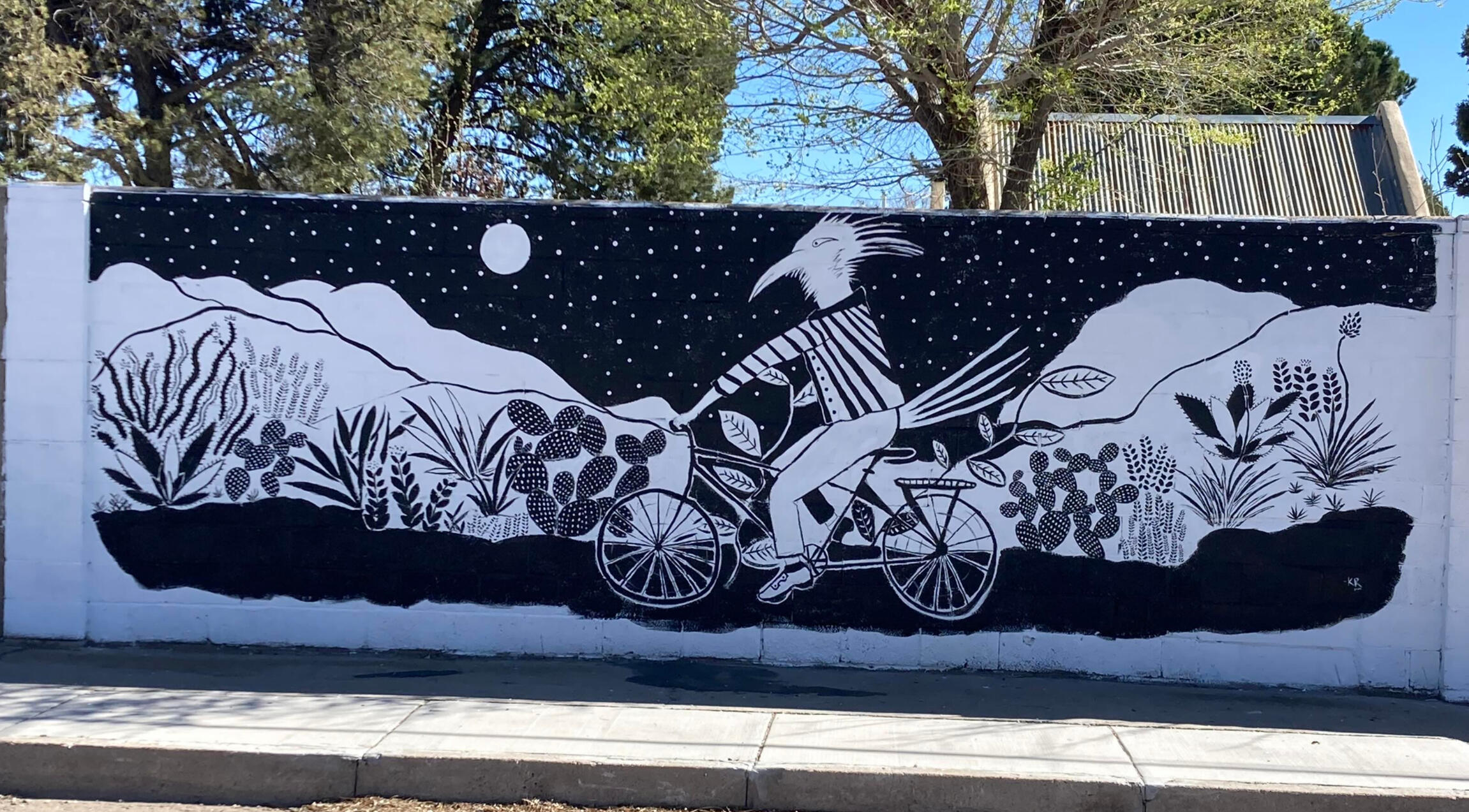 "The Rider" came rolling along as another of the first two murals. This cruiser, by Kelsey Rust, is riding to pick up a copy of Kelsey's book of poetry (One Life) while Kelsey works daily as a public-school educator.