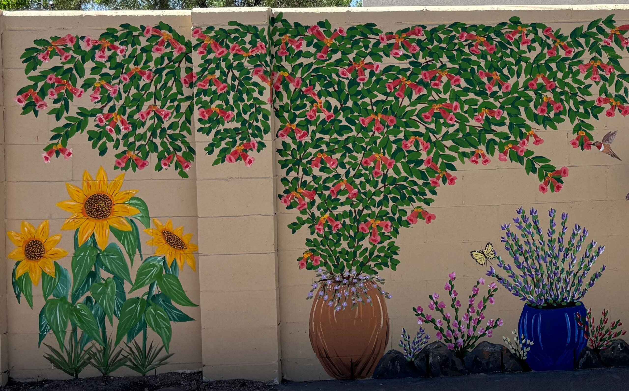 Don Bremner came all the way from New Zealand to learn to garden in the desert. In "Contagious Color", Don has created a perfect garden for the desert, no water needed. Don transferred his acrylic on canvas talents to stucco and opened ThingsOnTheWall.com to