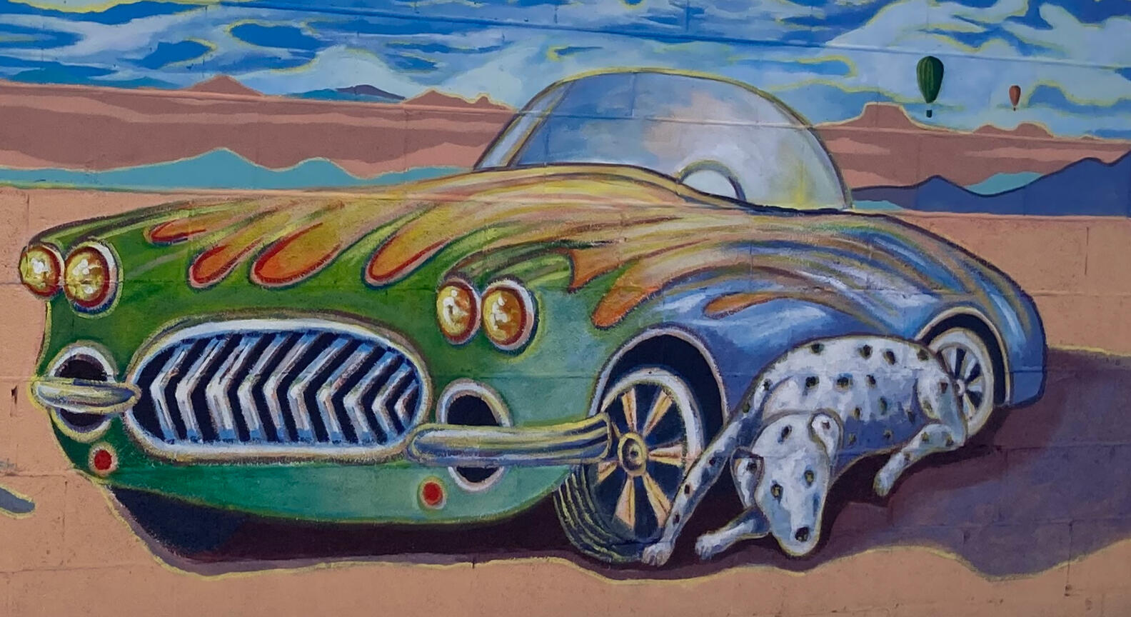 Constitution Ave is no Route 66 but, one look at Derrick Montez's " '57 Corvette with Dalmatian on the Mesa" and you can relive those '60s vibes. Derrick learned mural painting in LA and has dedicated his time to sharing his talents in the Duke City since 2021. [email protected]