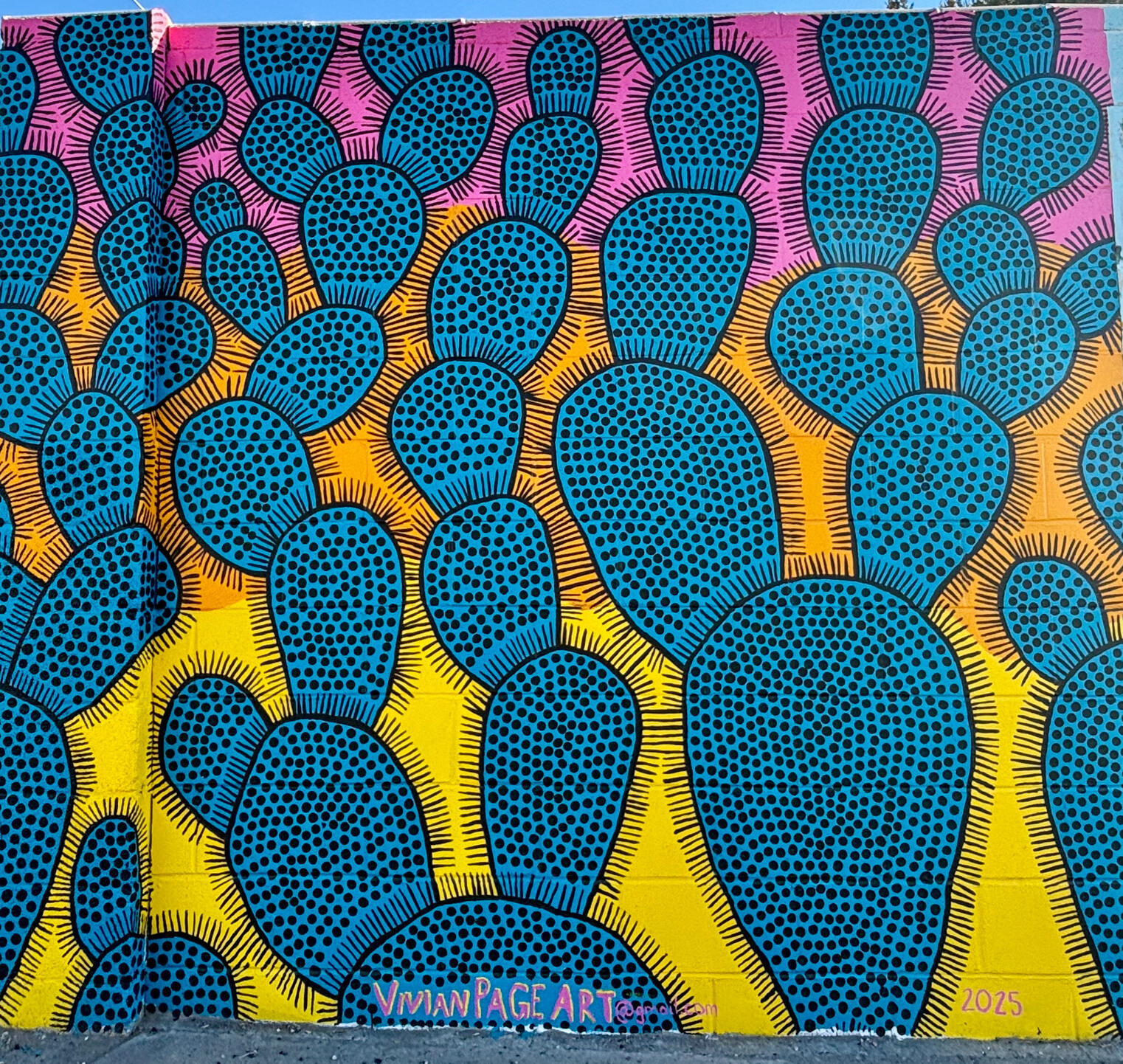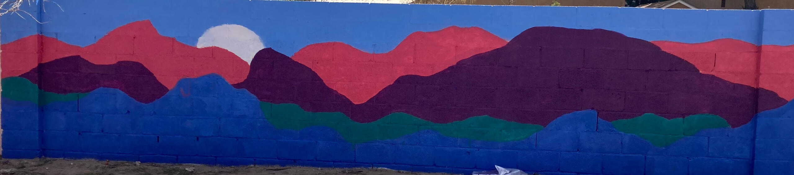 How can a simple mistake bring such pleasure? "Moonrise", sketched on an incorrect wall, was painted by Cathy Drake. The sketch was by artists Isaac Burleigh and Kiran Bhail, from the Constitution Ave mural fame, "The Sandias."
